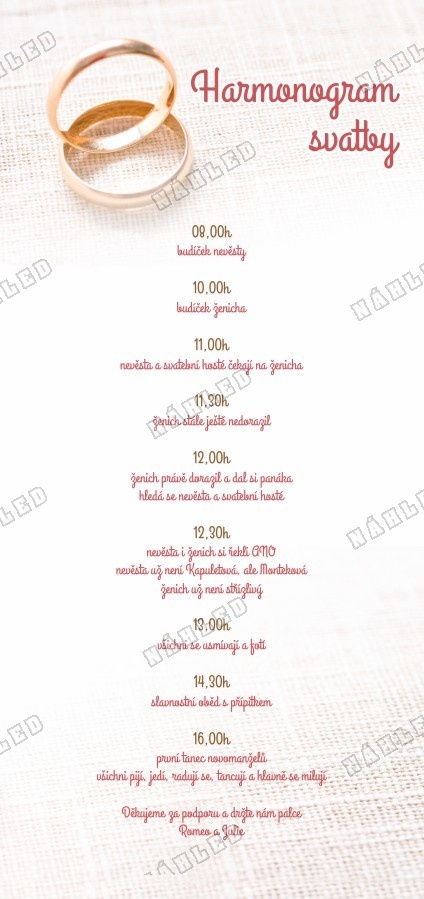 Cena Harmonogram svadobného dňa DLS - 138(Cena I): 0,-